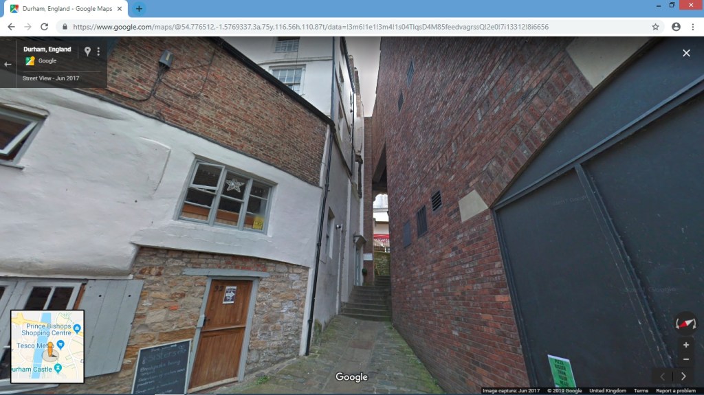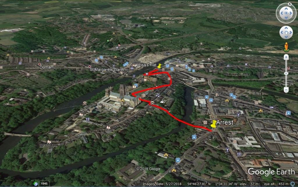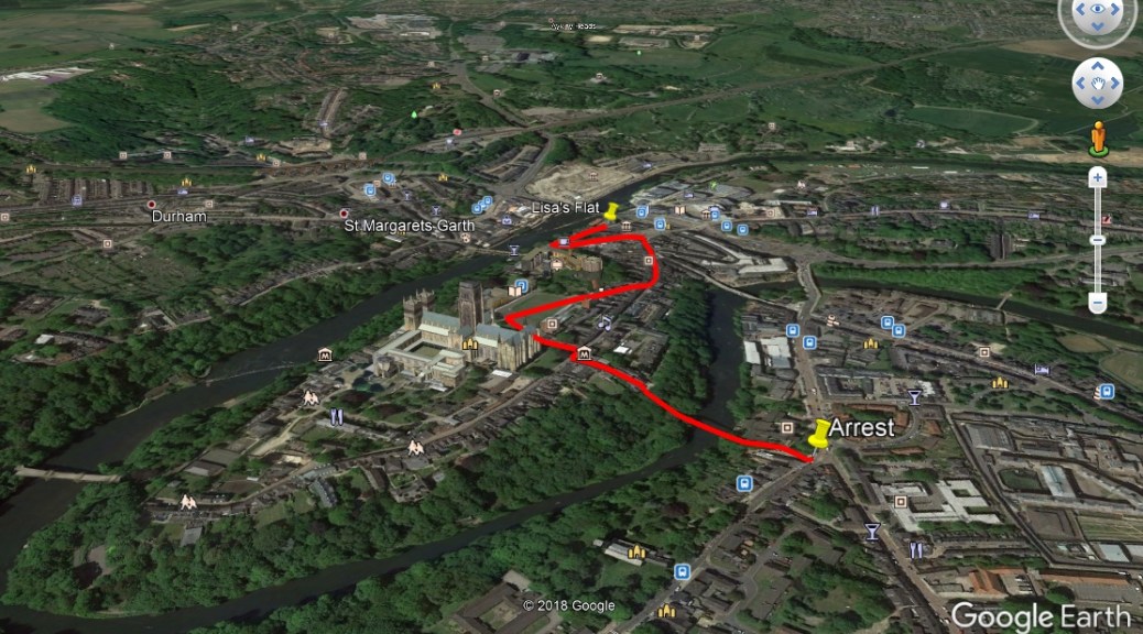 My new, upcoming indie horror title, ‘Maypole,’ opens with the central character, Lisa Marston, fleeing her abusive boyfriend. The chase begins at their flat in the old town part of Durham and follows a specific route (about 0.6 of a mile) to the traffic lights on Church Street. Here the pursuer gets in a scrap with a passing motorist and is arrested by police.
